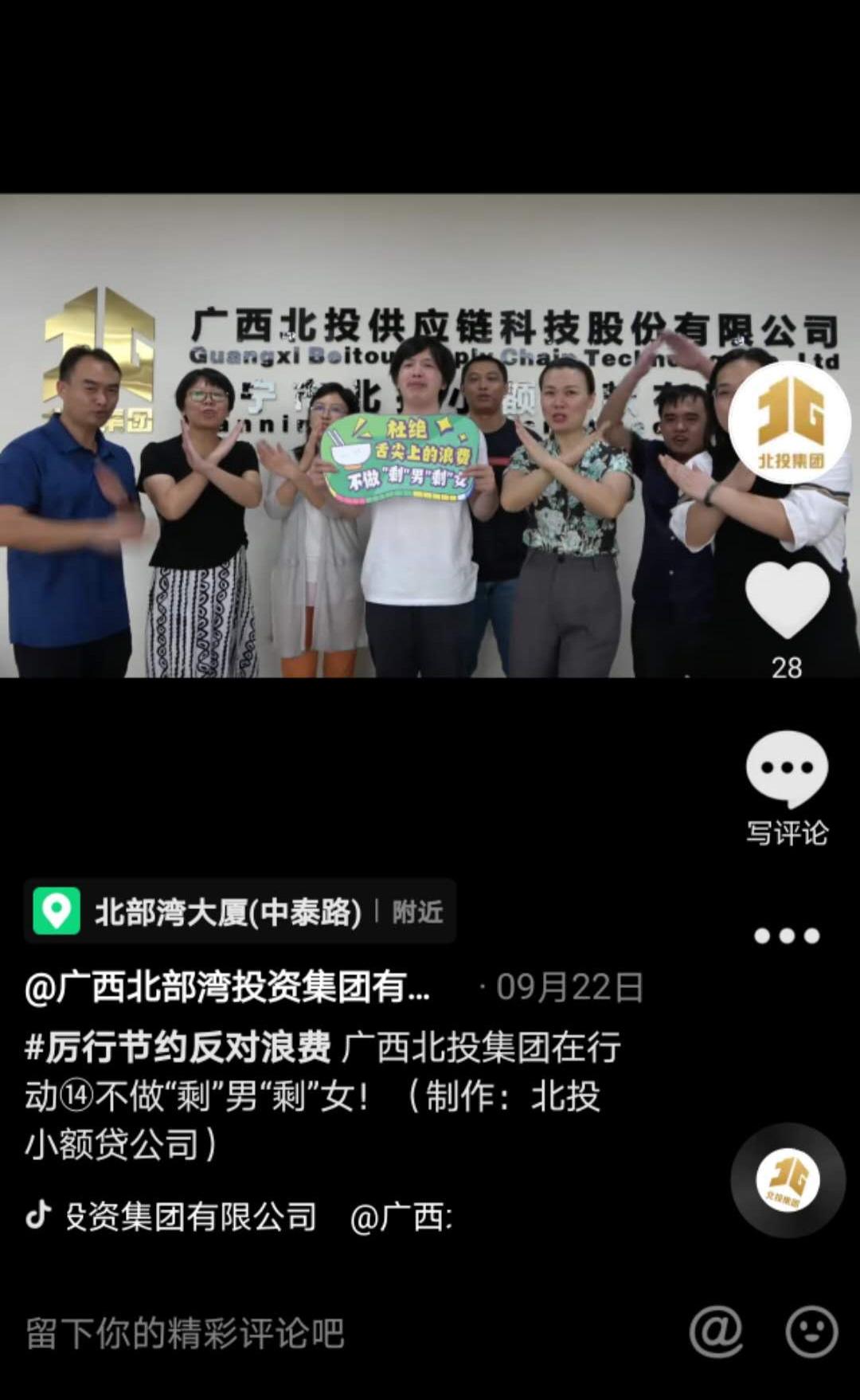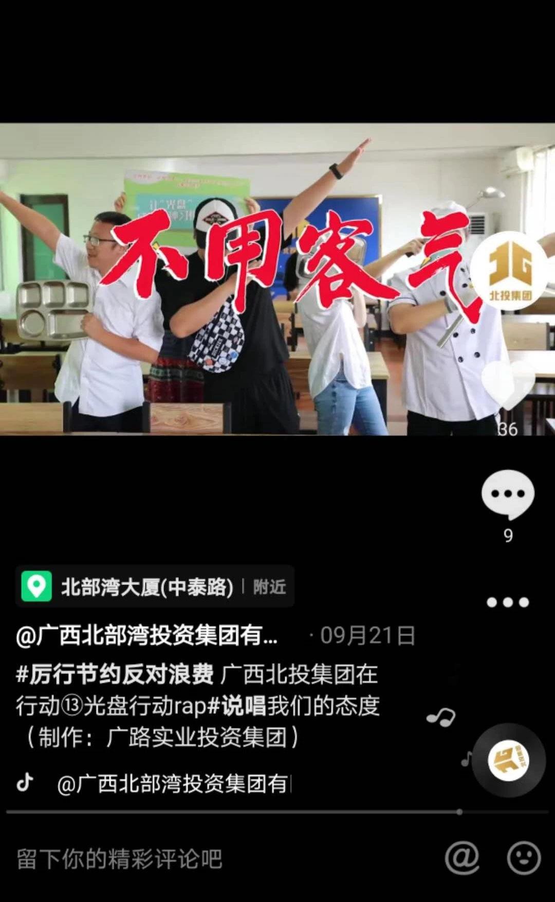 各直属单位用镜头记录员工的践行厉行节约、反对浪费的细节,制作创意小视频,向大家宣传勤俭节约的传统美德。短短2周征集到了32部“厉行节约 反对浪费”主题的短视频,小编将在北投集团抖音号为大家呈现。