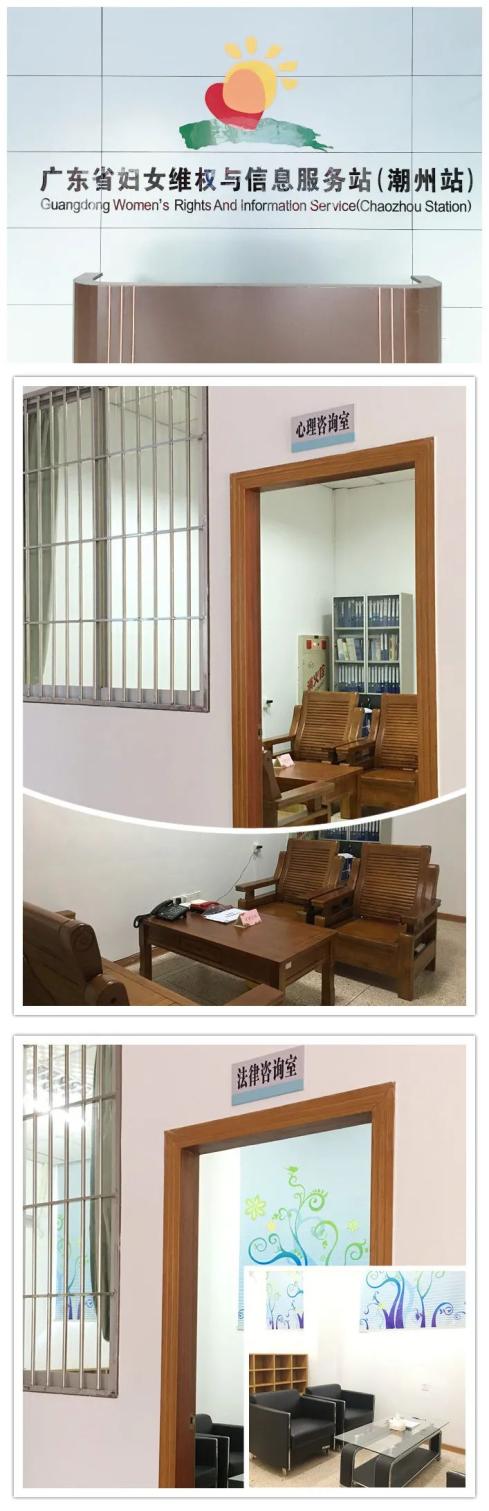 服务站内设各个服务室现项目活动已经开始启动,近期设立在广东省妇女维权站与信息服务站(潮州站)进行法律、心理免费咨询,邀请到广东省森凯律师事务所的律师团队和潮州市合一心理咨询师团队在服务站值班。
