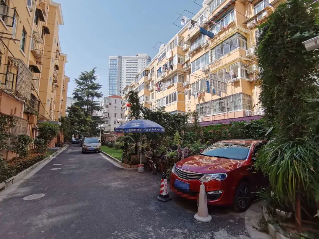 小区里的一条支路上原本有2个车位,但是居民的想法是将这个地方作为下象棋、 聊天的休闲区,有些居民将自己家种的绿植花卉搬到空地处。