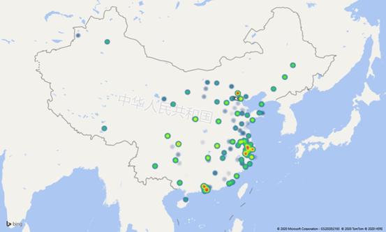 图2.1.1 中国“双创”金融机构分指数百强城市地域分布