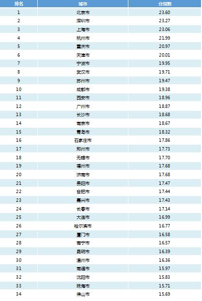 本期“双创”金融机构分项排名全国前十的城市依次是北京、深圳、上海、杭州、重庆、天津、宁波、武汉、苏州和成都。