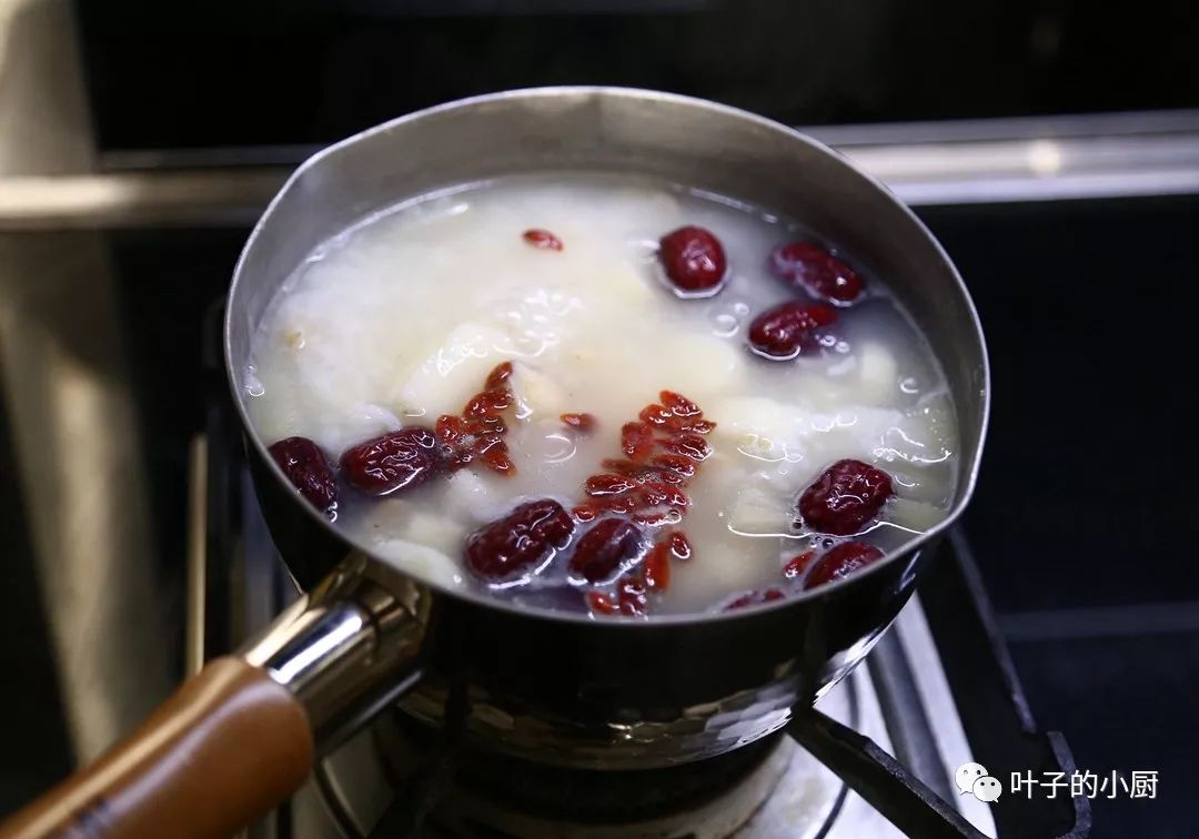 这一步很重要哦,山药和雪梨一定要先煮熟后再下米,这样做出来山药软烂好吃,