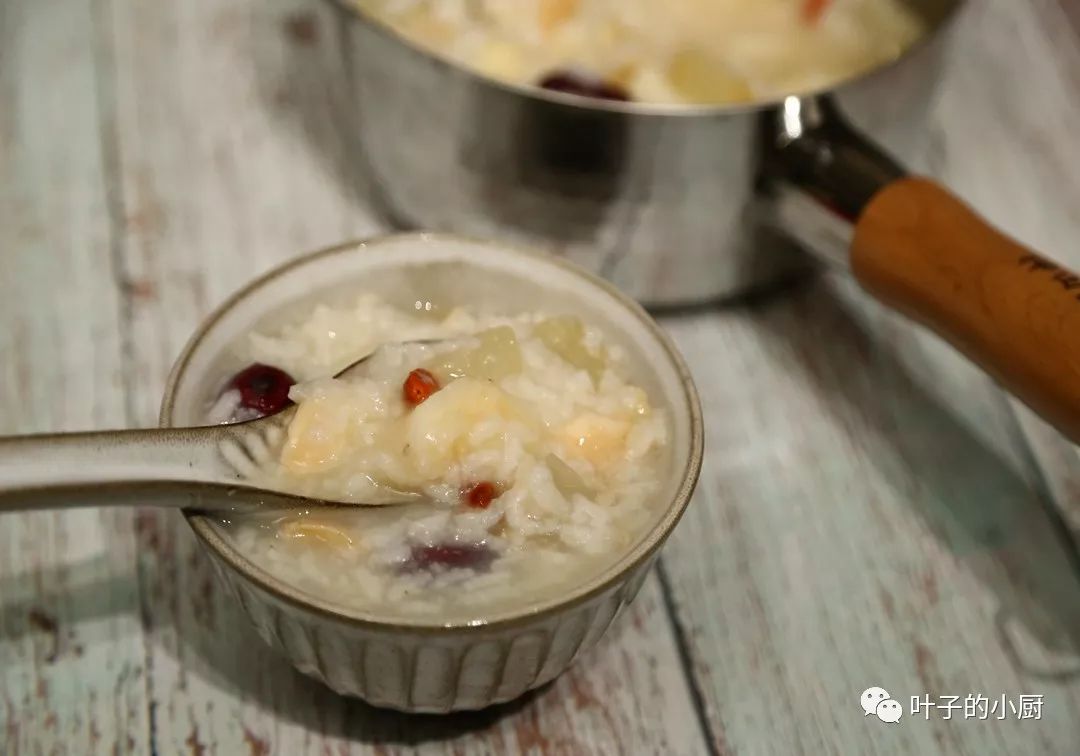 雪梨味道融入了汤里,大米和米汤的米香味也浓。