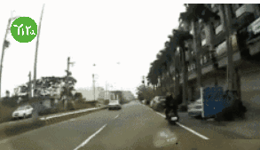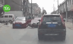 图:摩托车驾驶人惨遭“开门杀”,摔倒后再与两车发生二次碰撞。