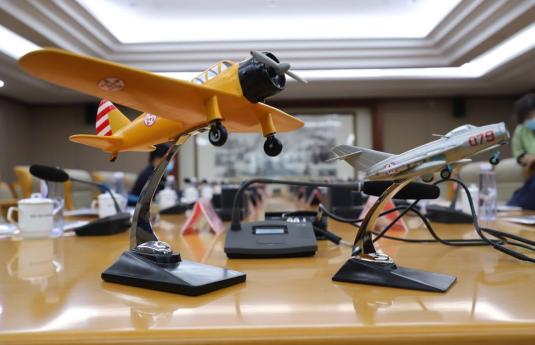 东北老航校研究会向抗战馆赠送飞机模型东北老航校研究会向抗战馆赠送老航校曾经使用过的日制九九式高级教练机的模型和研究会会刊《东北老航校研究》。