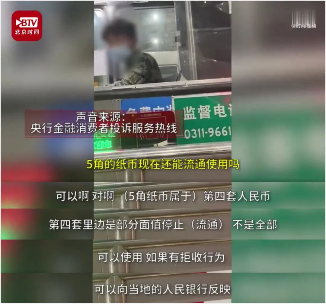 就在2018年,有关部门就启动了对拒收1角、5角纸币现象的整治,截至当年11月,人行营业管理部处理了30起不同类型的拒收现金行为,约谈了2家知名企业;还专门强调,有的商户对第四套人民币停止流通政策有误解,误以为1角、5角纸币也已经停止流通而不收取,实际上,1角、5角纸币仍可流通,银行仍在正常收付,单位和个人不得拒收。