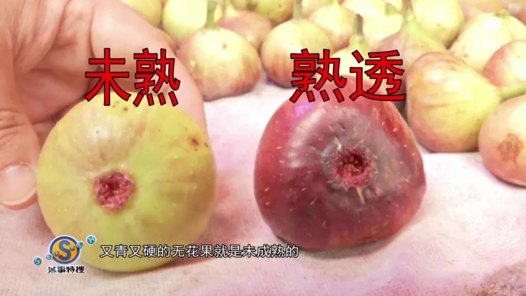 1.未成熟的无花果又青又硬;熟透的无花果又红又软2.将它们剥开,熟透的无花果,果肉好像要融化一样,富含糖浆