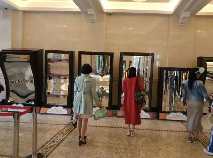 出了哈哈镜区域,我到了室外游乐园演出的舞台场地。见到了一块“天上玛多 大世界城市舞台——玛多非物质文化遗产展演周”的大幅广告牌,上边还有两面微信扫码,工作人员告诉我们,用手机扫码,可以得到一张书签。我立即按照工作人员的指点,进行了两次扫码。跟在我身后的一位来自扬州高邮的大伯,也进行了微信扫码,他的老伴,不停地劝阻他不要扫码,担心有诈。老伯说,不会有诈,我也告诉她,在大世界里不会有诈的。高邮大妈这才放心。随后,那两位大伯大妈与我攀谈起来,说起扬州高邮来头头是道,自豪满满,他们告诉我,他们居住在高邮县城,老家农村也有住房,生活过得十分美满富足。之后,他们与我不时在多个场合相遇,都会热情地招呼交谈。
