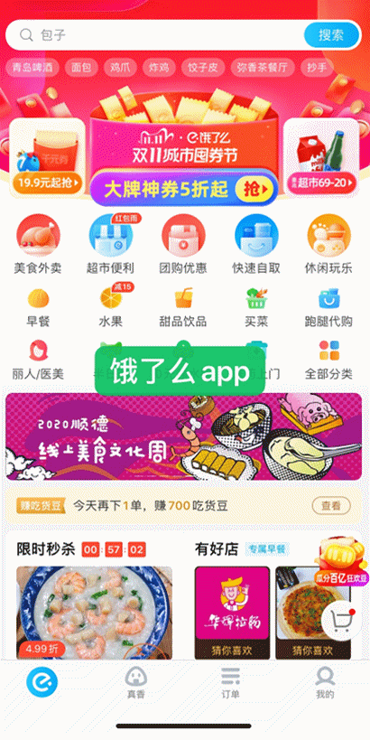 方法③——打开饿了么或口碑APP搜索 “顺德美食节”,进入活动页面。