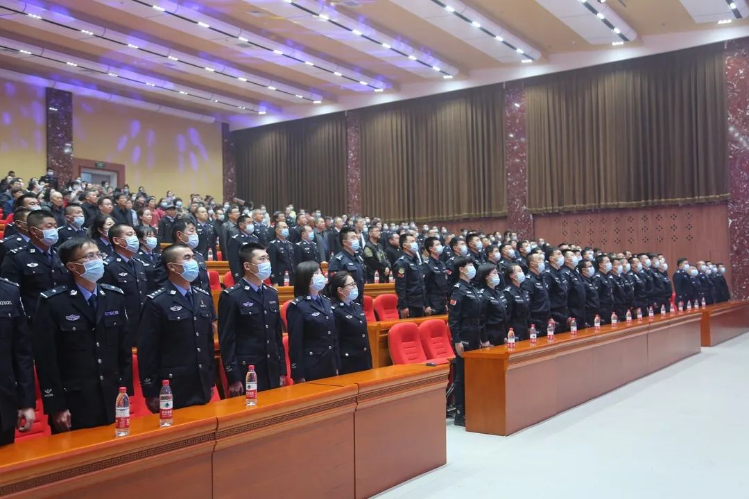 为深入学习贯彻习近平总书记重要训词精神,进一步掀起“坚持政治建警 全面从严治警”教育整顿热潮,激发全体民警、辅警立足岗位做贡献、履职尽责促发展的工作热情,切实打牢高举旗帜、听党指挥、忠诚使命的思想根基,11月6日,奈曼旗公安局举行“警徽向党 人民至上——全旗公安机关‘坚持政治建警 全面从严治警’教育整顿汇报演出”,全面展现奈曼公安焕然一新和朝气蓬勃的精神风貌。公安厅教育整顿第四指导组组长夏海,通辽市委第九巡察组全体成员,通辽市公安局党委委员、副局长姜波,旗委常委、组织部部长包连山,旗人大常委会副主任王立强,旗人民政府副旗长、公安局党委书记、局长张显鹏,旗政协副主席李哈日巴拉,旗委政法委、旗妇联、团旗委等有关部门领导,两代表一委员、行风监督员、为民拥警协会会员、离退休老干部等社会各界人士及民辅警代表400余人在现场观看演出。
