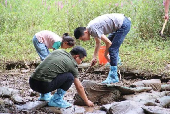 蟛蜞喜打洞,看到那些小小的洞铲下去、或用蟛蜞条捅,躲在里面的蟛蜞就会跑出来,一抓一个准,用不了多久竹篓就满了。