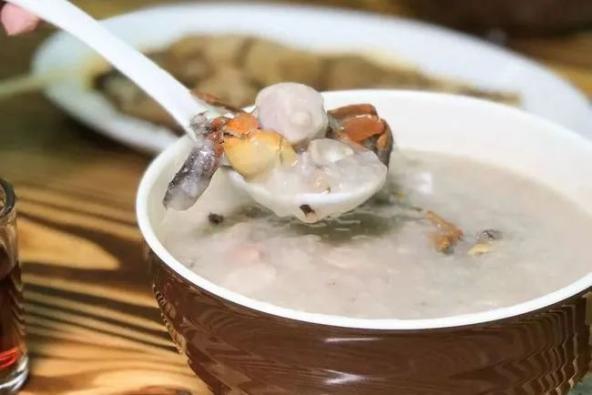 而还有一美食就是蟛蜞豆腐羹。单看菜名,有人或许以为这是由蟛蜞和豆腐烹制的羹,其实与豆腐并不沾边,仅形似而已,主料纯粹是蟛蜞,那“豆腐花”是蟛蜞汁煮出来的模样,口感是松软香醇的“嫩”、原汁原味的“鲜”。