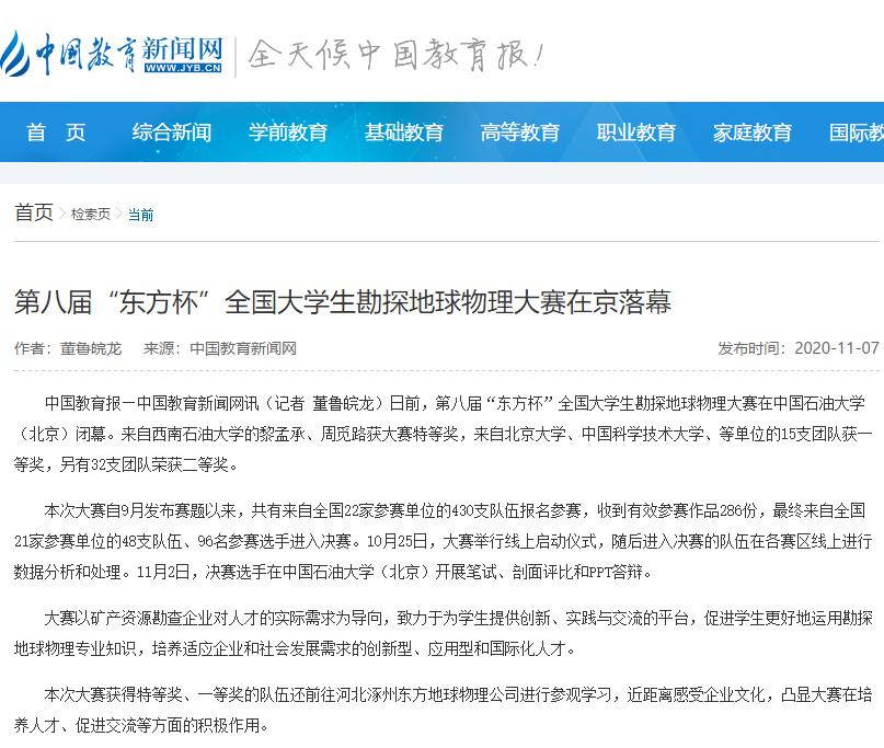 第八届“东方杯”全国大学生勘探地球物理大赛