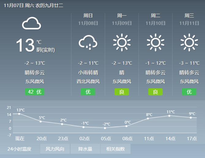 气温在-2℃至13℃之间