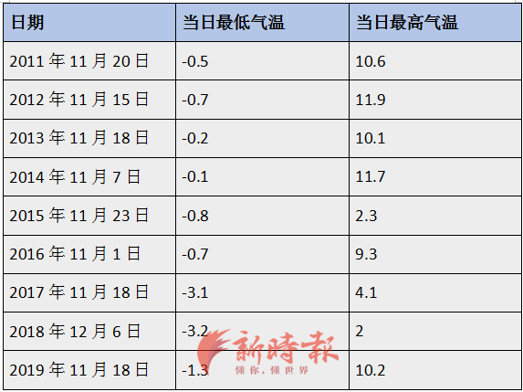 那么济南是从什么时候开始是“真冷”呢?新时报记者从济南市气象台查阅到近2011年下半年起,济南市区气温首次跌落0℃的日期,发现绝大多数“冰冻天气”出现在11月中下旬。
