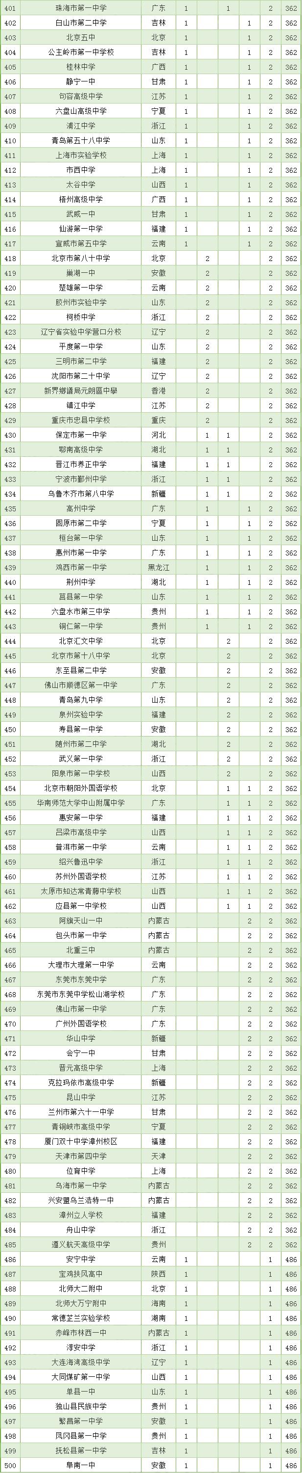 这是学科竞赛网连续第四年权威发布《全国学科竞赛500强中学排行榜》,上榜的学校代表了国内中学最强的学科竞赛实力。