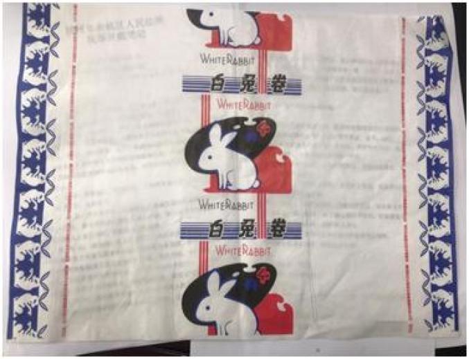 ��被告侵权的“致敬大白兔”被告黄某说:虽然我上面也是“大白兔”图案,但是,我的大白兔跟你的大白兔明显不一样呀,你看,你是写实风,我是漫画风,我们不构成近似的。而且蛋糕纸上也标注了“非冠生园官方出品,仅代表蛋糕售卖方致敬大白兔奶糖”,我没有侵权的恶意。再说我销售的是蛋糕包装纸,与奶糖不相同也不相似,不会使消费者产生混淆。