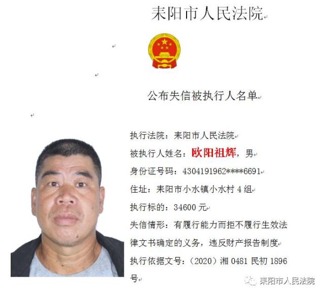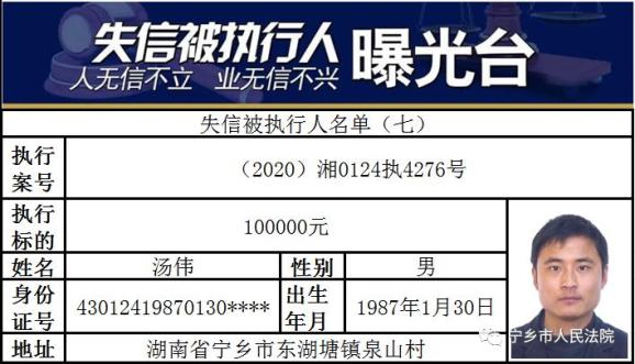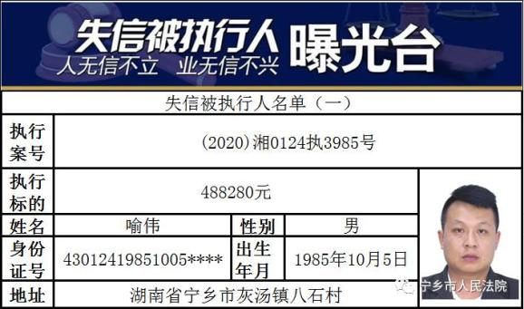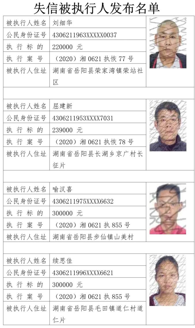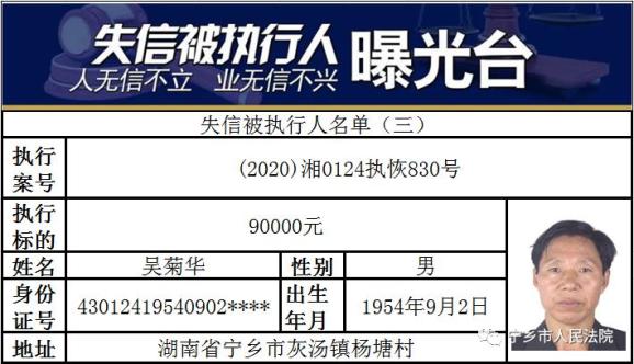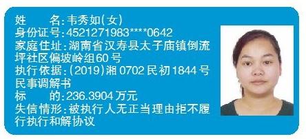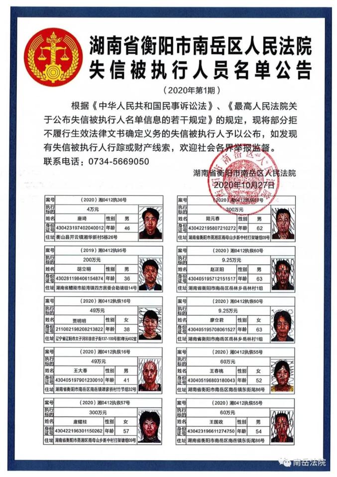 湖南最新曝光一批失信被执行人!