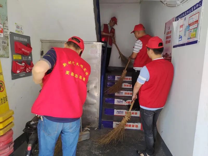 芙蓉区各街道、社区志愿者成为楼道里的一抹亮丽红。
