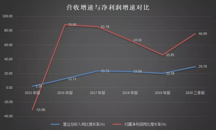 实际上,这一生意模式不仅带动了公司新品的销售,也相应地降低了公司的费用支出,这就又带动了公司销售净利率的提高。如下图所示,自2016年以来,迈瑞医疗净利润增速就持续高于公司营业收入增速,显示出公司良好的获利能力。