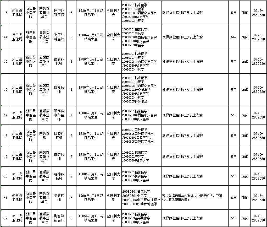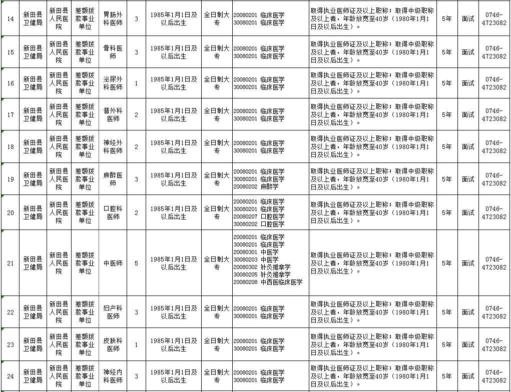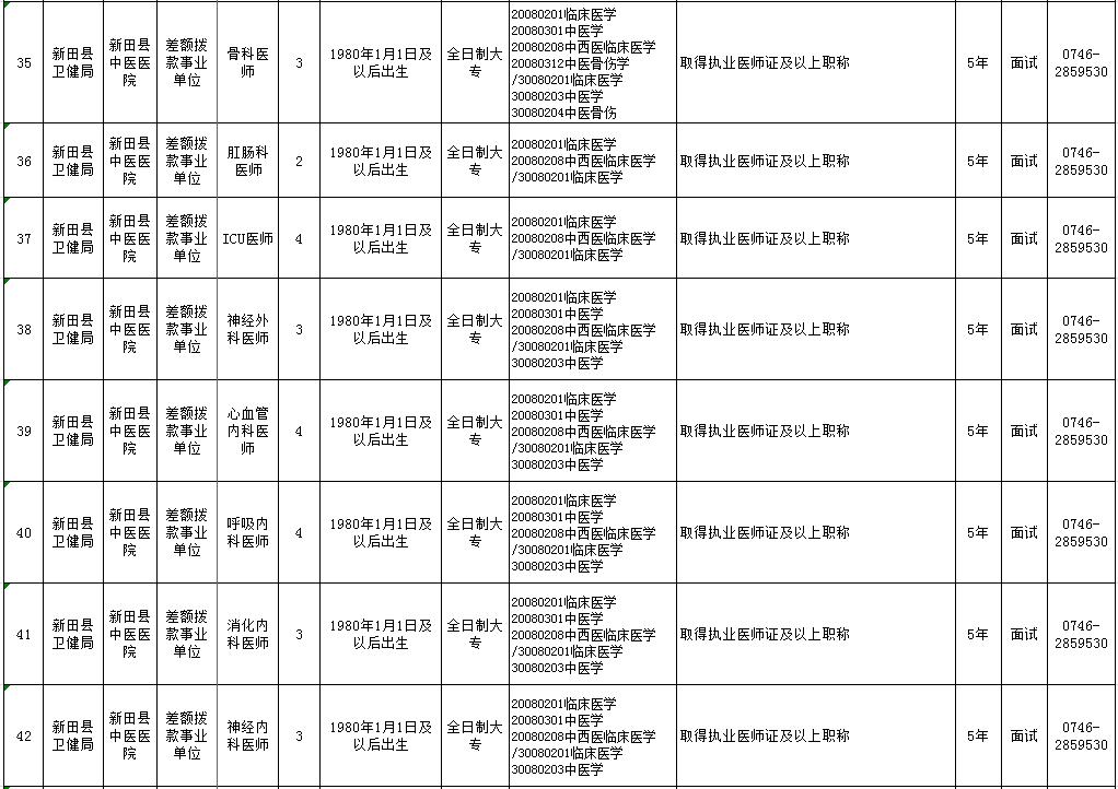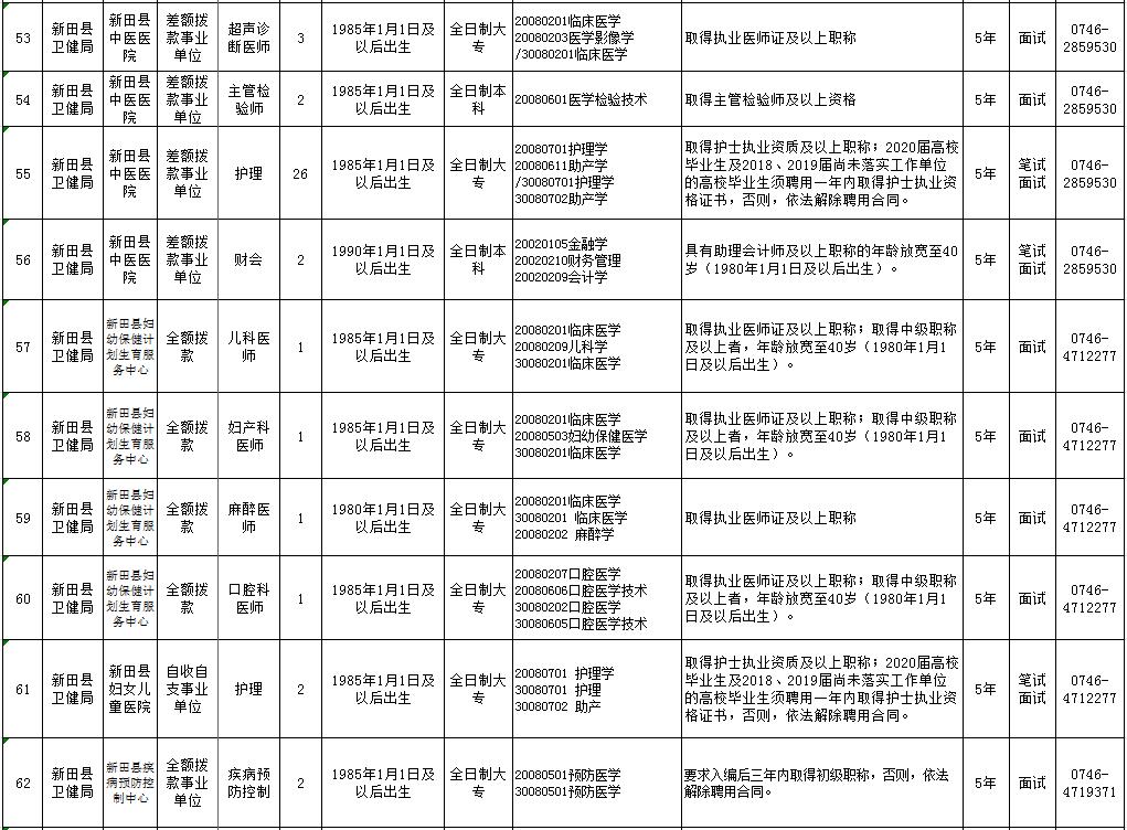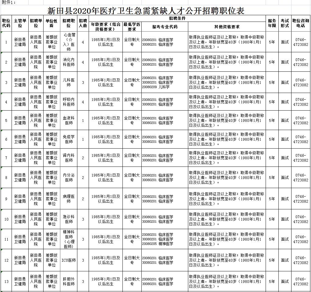 新田县2020年医疗卫生急需紧缺人才