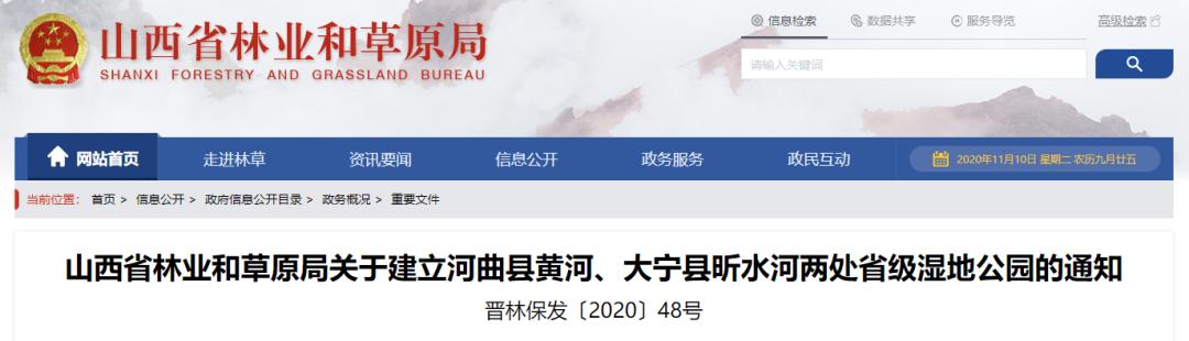 近日,山西省林业和草原局下发《关于建立河曲县黄河、大宁县昕水河两处省级湿地公园的通知》,同意建立河曲县黄河、大宁县昕水河两处省级湿地公园。
