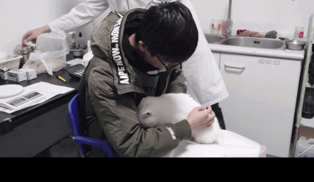 医生将注射器扎进汤圆的前爪,药物推进去,汤圆慢慢安静下来,躺在明亮的腿上,一动不动。明亮瞬间崩溃,低下头靠近汤圆,全身颤抖,不停抽泣……