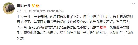 有主人感慨,希望自己的宠物能够少受一点罪,活的时间长一些。老尹却说:“活得长的代价就是多受罪。”