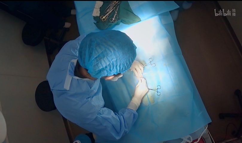 铺着蓝布的手术台、各种型号的手术钳、穿戴整齐的医生……