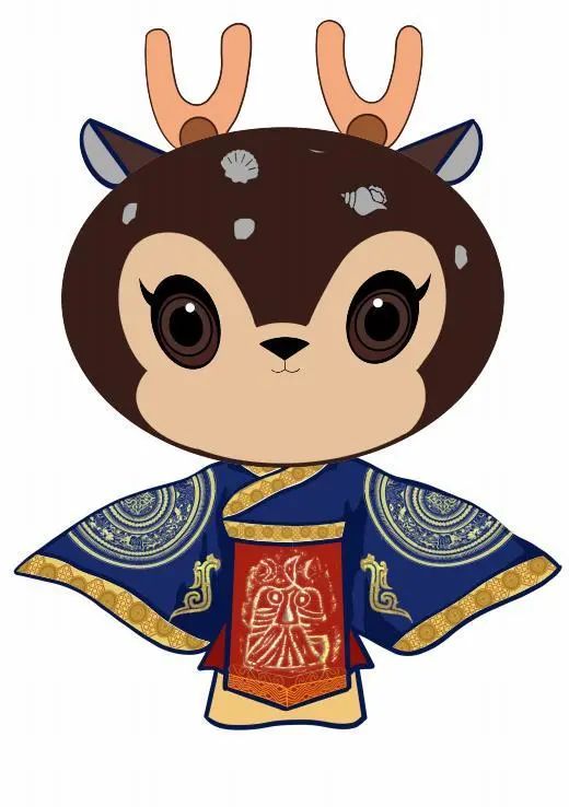 贝小妮联盟吉祥物“连小博”和“贝小妮”,整体造型取自旅顺博物馆馆藏“嵌贝鎏金鹿形席镇”,嵌贝鎏金鹿形席镇是西汉时期压帷帐或席角的器物,形状为小鹿作卧伏,雌雄各两件,寓意福禄绵长,吉祥物头饰造型取自于大连海洋元素。