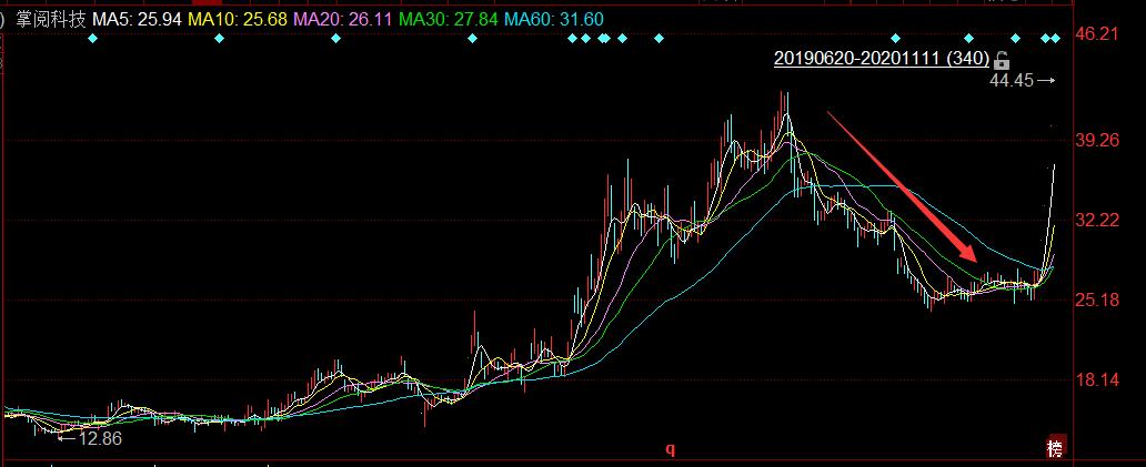 掌阅科技“嫁入”百度失败后,股价今年7月高位43.43元下来,跌了近40%。