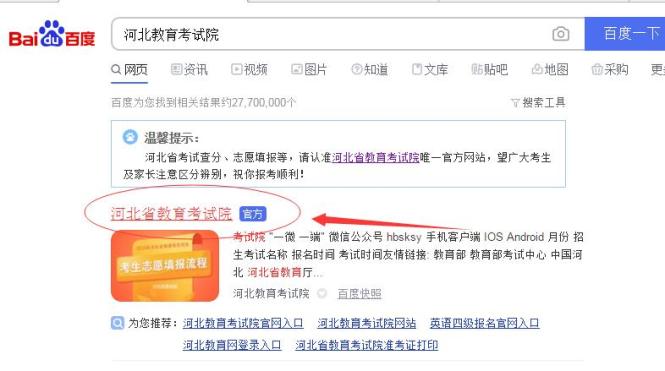 1.搜索“河北教育考试院”,进入官网
