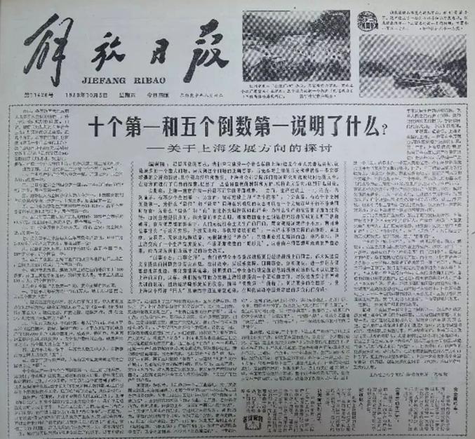 但是长年累月的透支,也让上海自身建设长期欠债。1976年上海1081万人,人均居住面积4.5平,比解放时增长不到1平米。指令性经济,也极大的限制了企业扩张和个人创新。1978年中国改革开放,最初注意力放在农村,之后南方沿海经济特区展开的城市改革,爆发出巨大活力。而彼时的上海经济,开始直面最初那批改开城市的挑战,1978年,上海经济占全国GDP的比重百分之7.5,到1990年降到百分之4.2,上海相对地位下降了,人心思变。1980年10月1日,解放日报头条就曾发布文章,《十个第一和五个倒数第一说明了什么?》,直指上海城建缓慢,经济比例失调,污染严重。