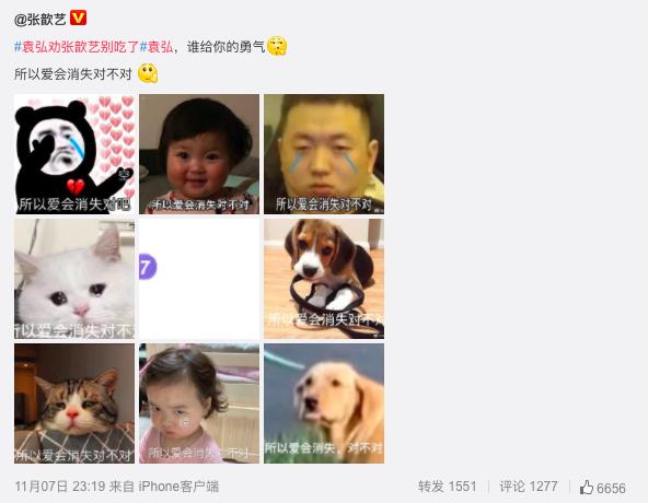 袁弘和张歆艺的爱情可谓是“相爱相杀”。再之前张歆艺带货直播时吃东西,袁弘还在直播间留言劝她“别吃了”。