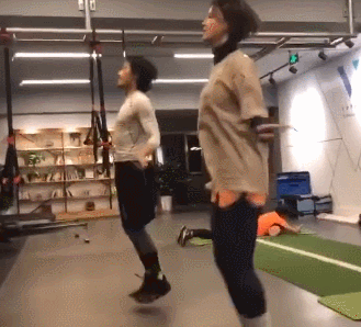 曾晒出两人一起跳绳减肥的动图,看着十分努力!(虽然网友的关注点是两人飞扬的短发,说袁弘剃掉胡子的话,就是共用一个头了��
