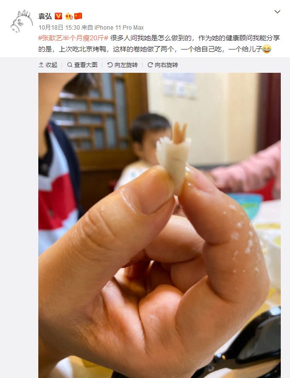 当张歆艺成功瘦下来后,很多网友想要知道减肥秘籍,袁弘再次以健康顾问身份作出回应,表示张歆艺对于饮食的克制。