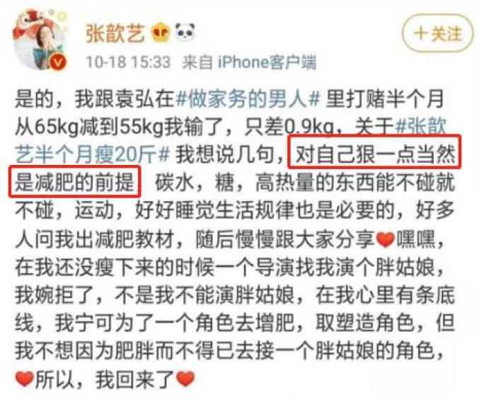 袁弘晒张歆艺腹肌照,曾10天瘦20斤的女人对自己到底有多狠?