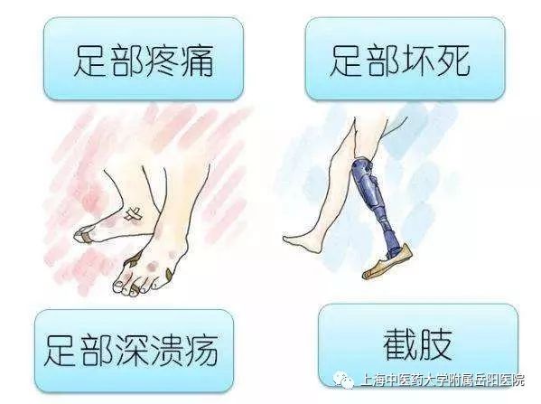 晚期阶段:表现为足部溃疡,难以愈合,容易感染,甚至出现足趾发黑、坏死,需要截趾或者截肢,此时病情已经十分严重,治疗费用高而预后却较差。