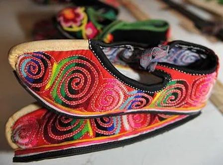 羌绣图案具有民族原始艺术的基础品质。在岷江上游地区的石棺墓葬中出土的双耳罐上的漩涡纹与羌族传统服饰云鞋上的云纹非常相似,羌绣中的飞蛾图案象征表现羌人的生育崇拜,羌族服装上的八结纹与石棺墓葬中出土的陶罐上的绳纹也有异曲同工之妙。