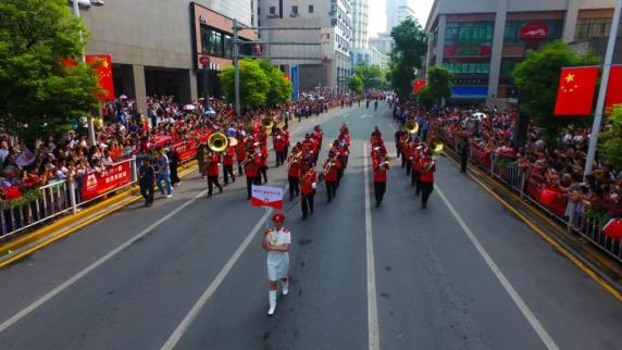 缓缓从夹道欢呼的人群中走过