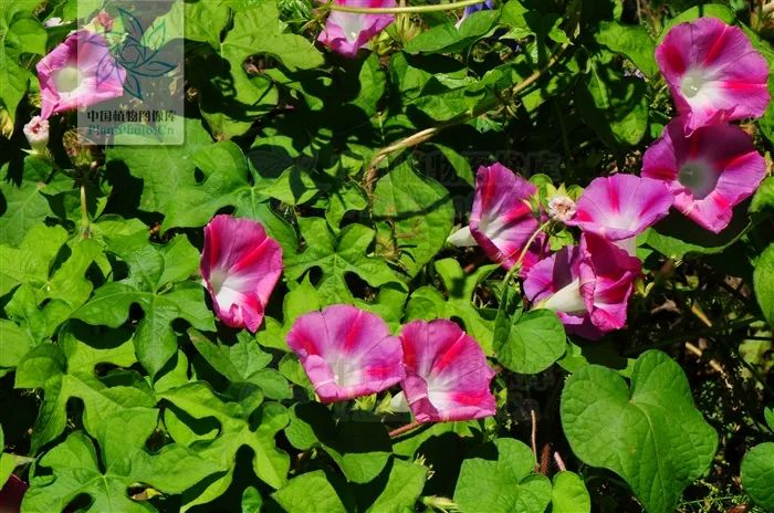 管状花目>旋花科>牵牛属牵牛花为一年生缠绕草本植物,常攀附在廊架上。叶片宽卵形,多3裂,基部心形;花大、腋生,夏季开花紫红或蓝紫色,花冠漏斗状,形似喇叭,所以俗称“喇叭花”,萼片披针状线形;蒴果如小球状被绒毛。牵牛花生长能力强,分布广泛,栽培做藤蔓观花植物。