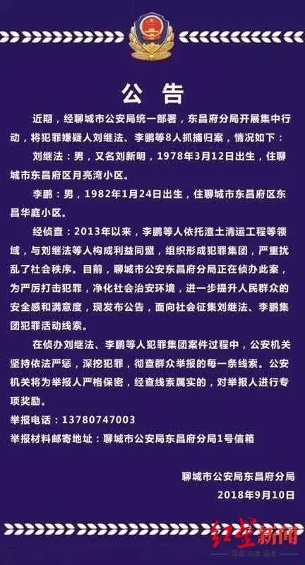 2018年刘继法等人归案后警方发布的公告