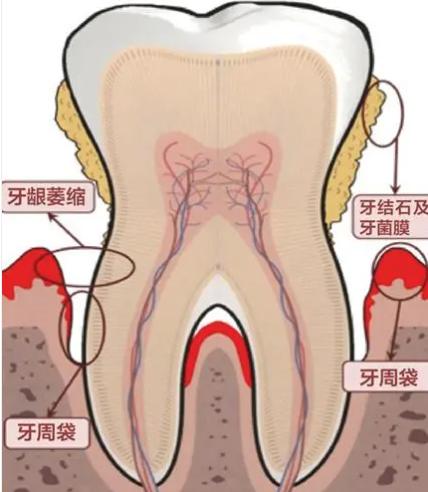 塞在牙缝的食物残渣不断挤压牙龈,牙菌斑在牙龈边缘不断刺激,使牙龈红肿。