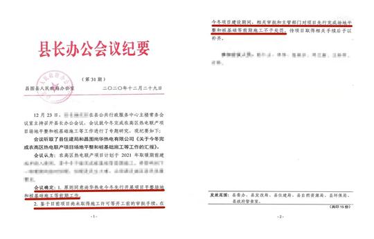 如,昌图县现代农业高新技术产业示范区热电联产项目一直未办理节能审查手续,也未取得环境影响评价、施工许可等行政许可。为加快项目建设,2020年12月昌图县政府专门召开县长办公会议违规推动项目开工。会议确定项目在未取得开工前有关审批手续的情况下,可先行开展平整场地和桩基础施工等工作,甚至要求相关审批和主管部门对项目建设不予处罚。该项目于2021年1月10日即开始桩基础施工,目前已完成2台锅炉桩基础工作,完成投资2000万元,地方有关部门对其违法行为未及时进行处罚。