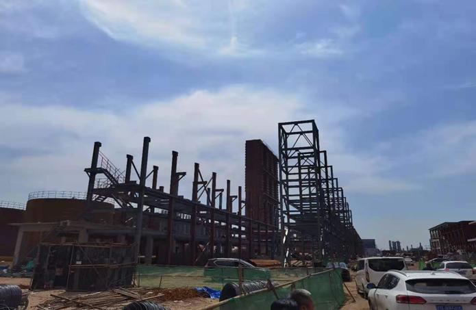 △图2 昌图县现代农业高新技术产业示范区热电联产项目违法开工建设锦州丰安实业有限公司180万吨/年焦化、12万吨/年甲醇工程为锦州市义县2020年重点项目,县委县政府还成立专班推进项目建设。2020年6月,该项目在未取得节能审查、施工许可等手续的情况下擅自开工建设,现场督察时仍在施工,目前已完成投资14.6亿元,总工程进度达70%。鞍山恒盛铸业有限公司炼铁1350立方米高炉产能置换项目一直未取得节能审查意见,但项目于2020年6月就开工建设,2020年底投入试运行,今年第一季度已满负荷生产,生铁累计产量达34万吨。