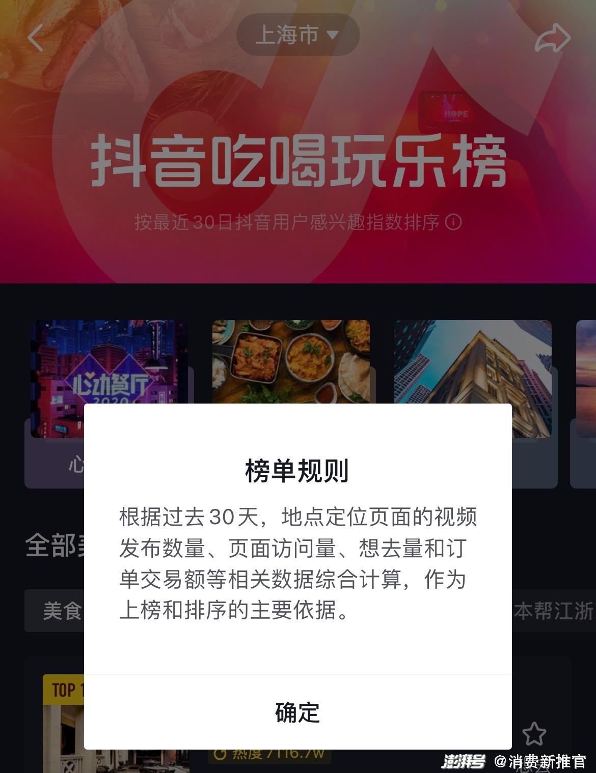 “抖音吃喝玩乐榜”的规则介绍