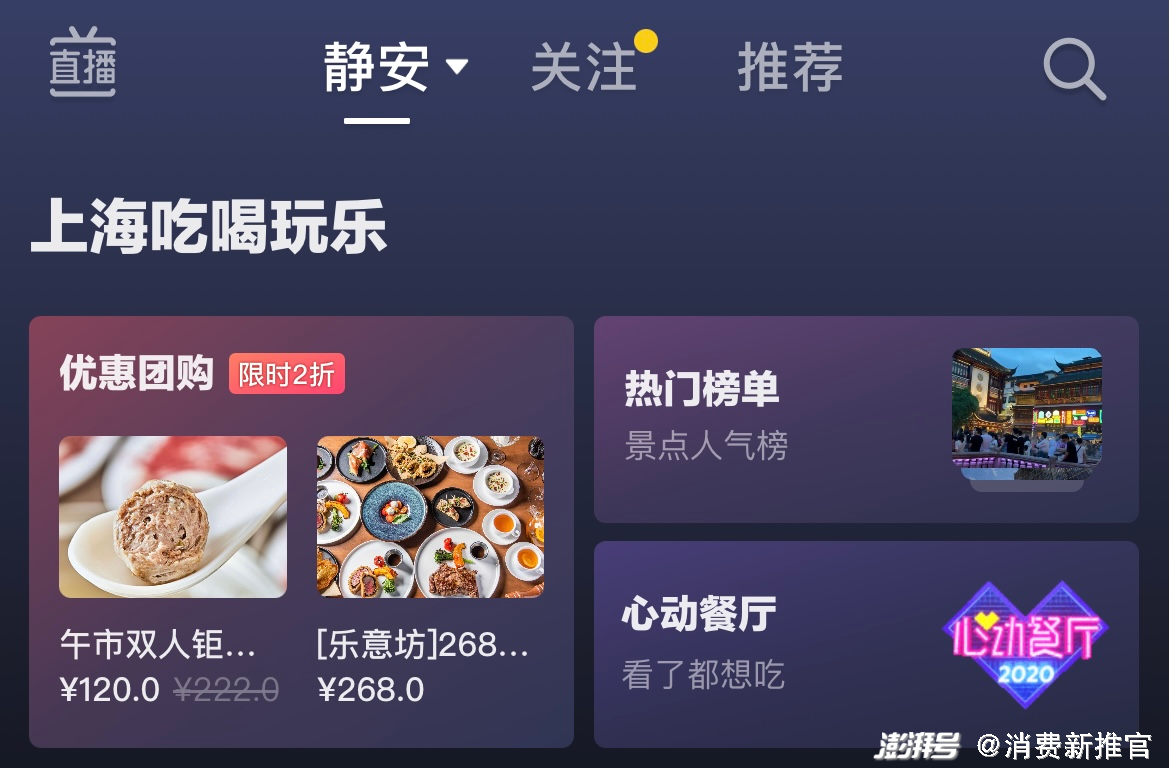 换句话说,只要有足够丰富的短视频种草内容,加上基于地理位置的算法推荐,团购、酒旅、电影等生活消费自然会被推送到用户眼前。目前来看,抖音的本地生活板块也的确在扩展到店业务。