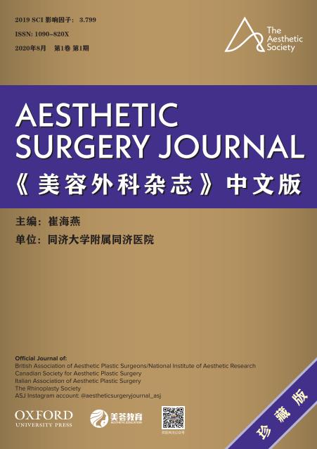Aesthetic Surgery Journal(美国美容外科杂志,ASJ)是国际知名的整形美容品牌杂志,创刊于1995年,主编Foad Nahai是美国著名整形重建外科教授,杂志出版形式为半月刊,2019年影响因子:3.799,美容外科领域国际影响力排名第一。该杂志一直以来倡导美容外科国际主流方向,内容涉及整形美容、修复重建、创新术式、解剖、微创美容、再生医学等热点领域及前言研究。