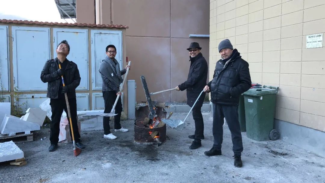 左起:Jung Lee、陈彧君、杨振中、张培力在意大利工作室 2018Q
