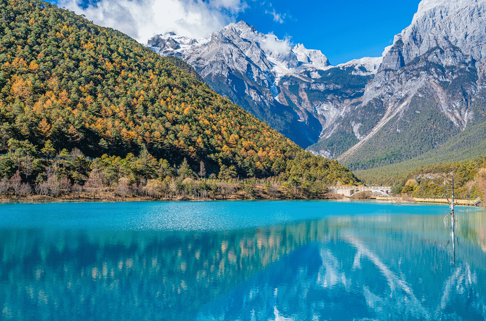又因其岩性主要为石灰岩与玄武岩,黑白分明,所以又称为“黑白雪山”。目前已经开发的旅游景区(点)主要有:冰川公园、甘海子、蓝月谷、云杉坪、牦牛坪、玉水寨、东巴谷、玉柱擎天、东巴万神园、东巴王国、玉峰寺和白沙壁画等。